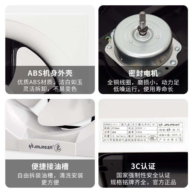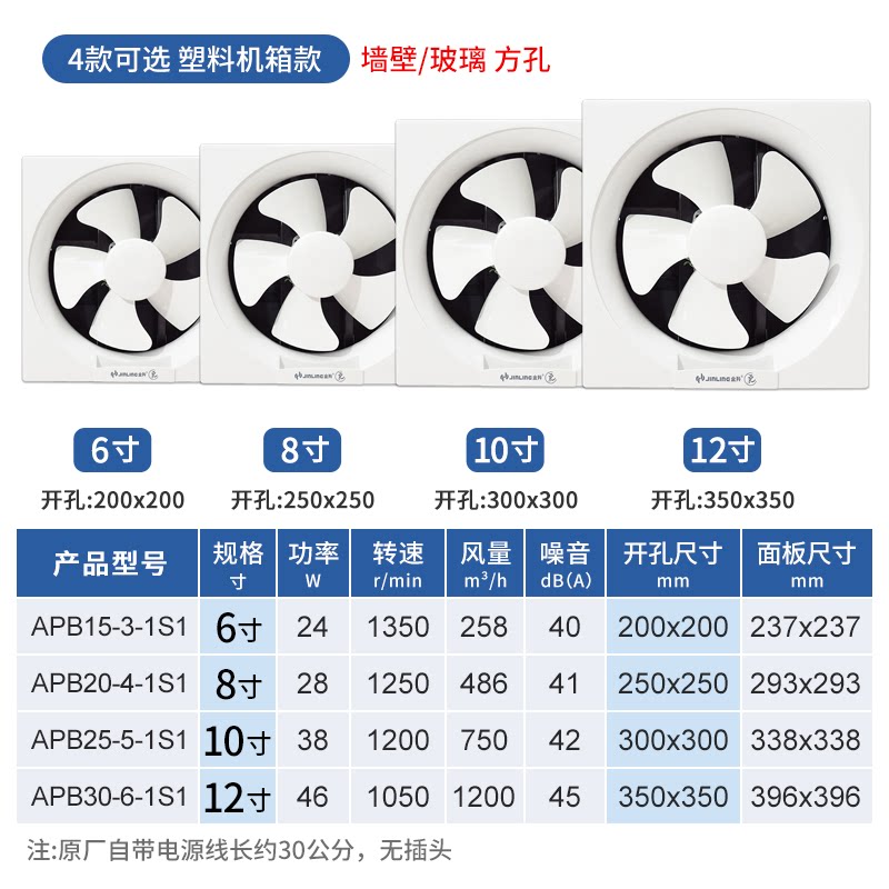 Jinling powder room exhaust fan shutter ventilation fan powerful mute 10 inch exhaust fan kitchen square hole exhaust fan