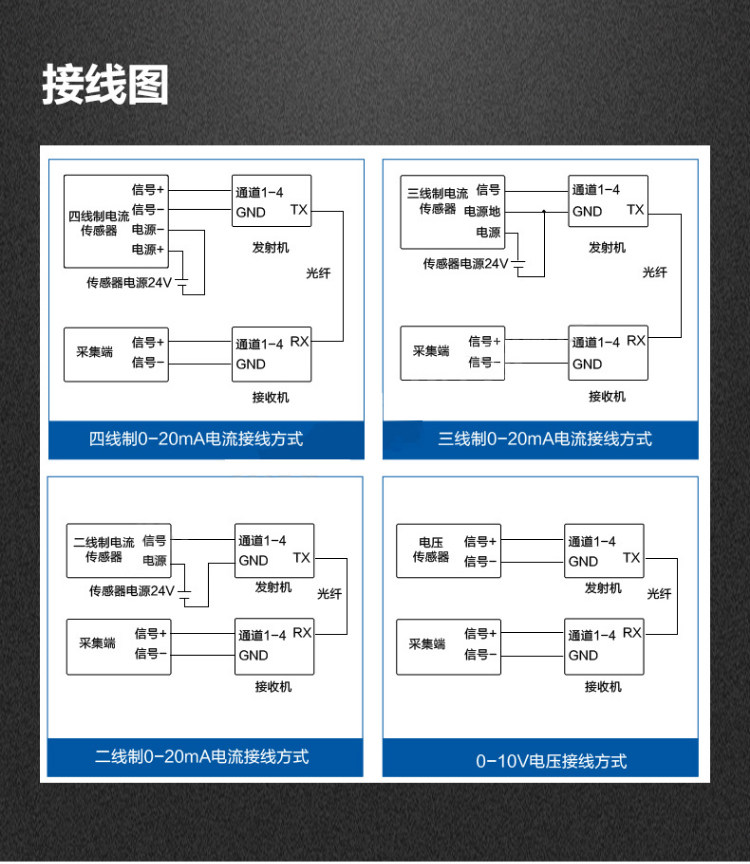 1-way analogue quantity optical transmitter and receiver 0-20MA2 road analog quantity optical transmitter and receiver 0-20MA4 road analog quantity optical transmitter 0-20MA8 road analog quantity optical transmitter and receiver 0-20MA