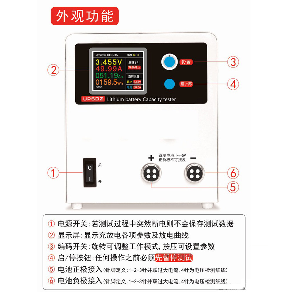 Ternary iron-lithium battery capacity tester single cell 50A high current charge and discharge capacity split aging discharge meter