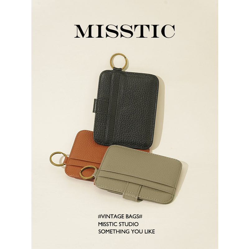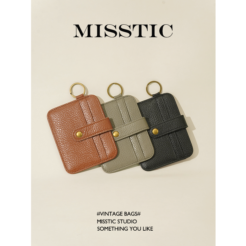 (MT) Top Layer Cowhide Retro Ultra-thin Multi-Card Buckle Card Holder with Key Ring Genuine Neutral Card HolderNew
