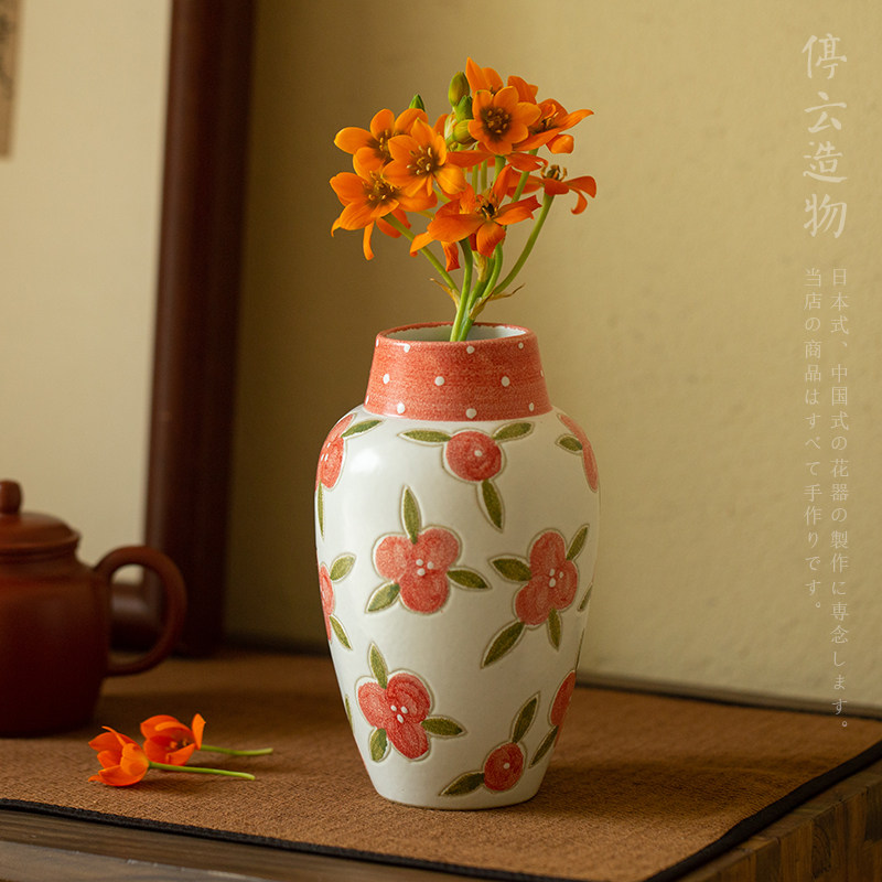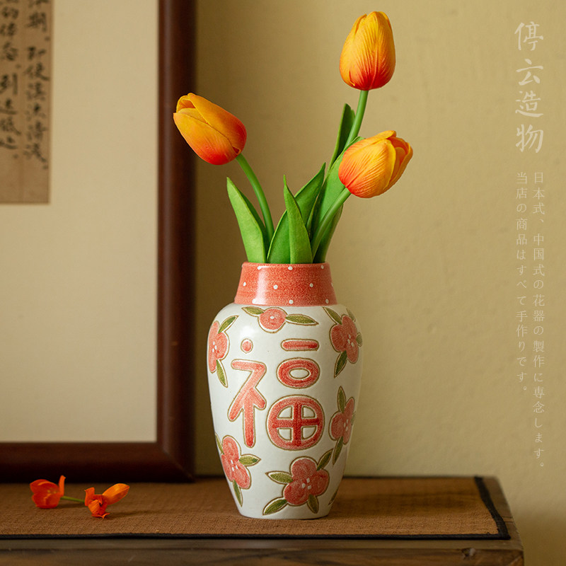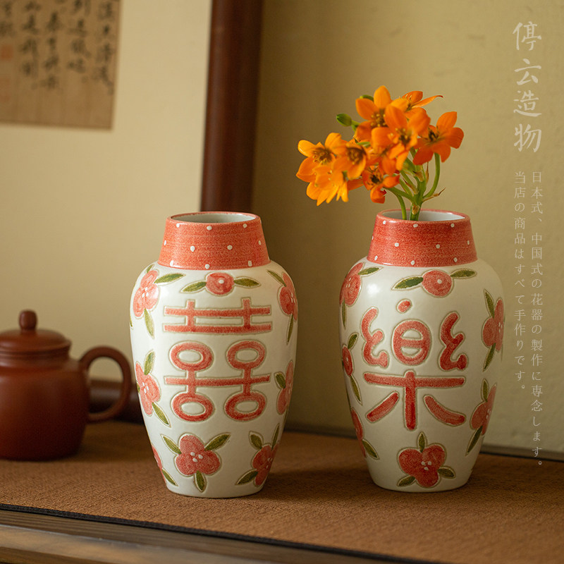 Fuxile Retro Stoneware Vase Ceramic Vase Japanese Style Flower Arrangement Newly Married Wedding Room Wedding Decoration Chinese Style