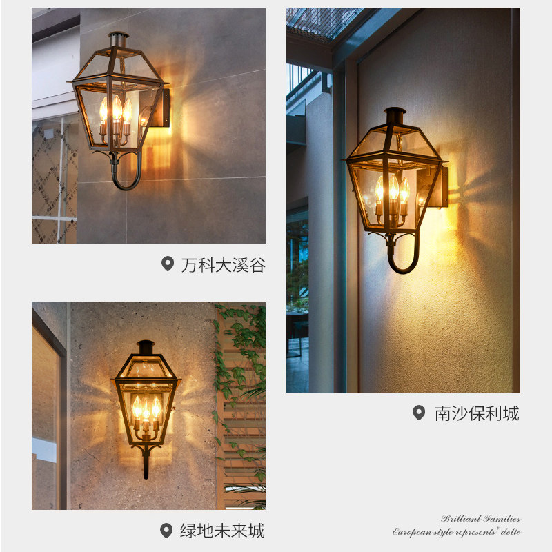 Total Copper Black Outdoor Waterproof American Wall Lamp Villa Gate Courtyard Lamp Outdoor Yard Wall Lamp Door Front Light Export