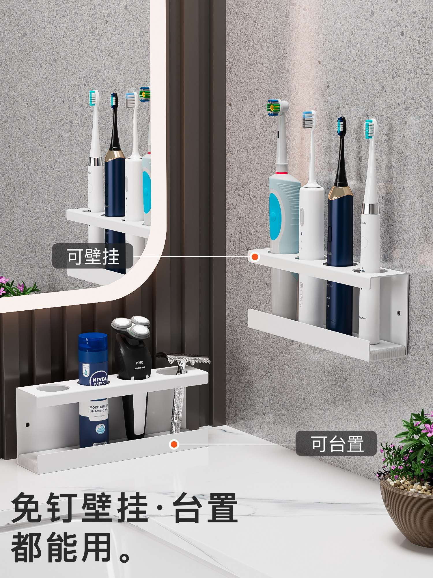 Electric toothbrush holder wall-mounted holder rack-free shelving rack holder Put toothbrush fixed shelf Divine Instrumental-Taobao