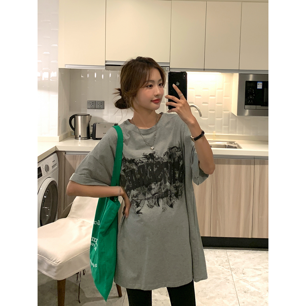 Pregnant Woman T-Shirt Summer Tide Individuality Fashion Printed Shaft Round Collar Short Sleeve Loose Large Size Gestation Front Postpartum Cover Slim