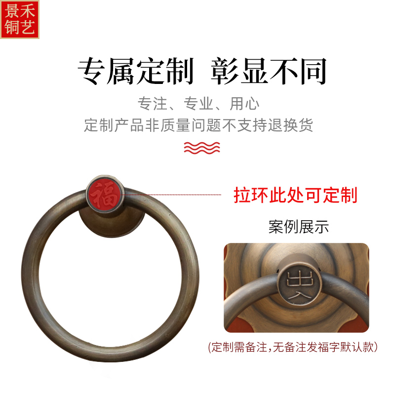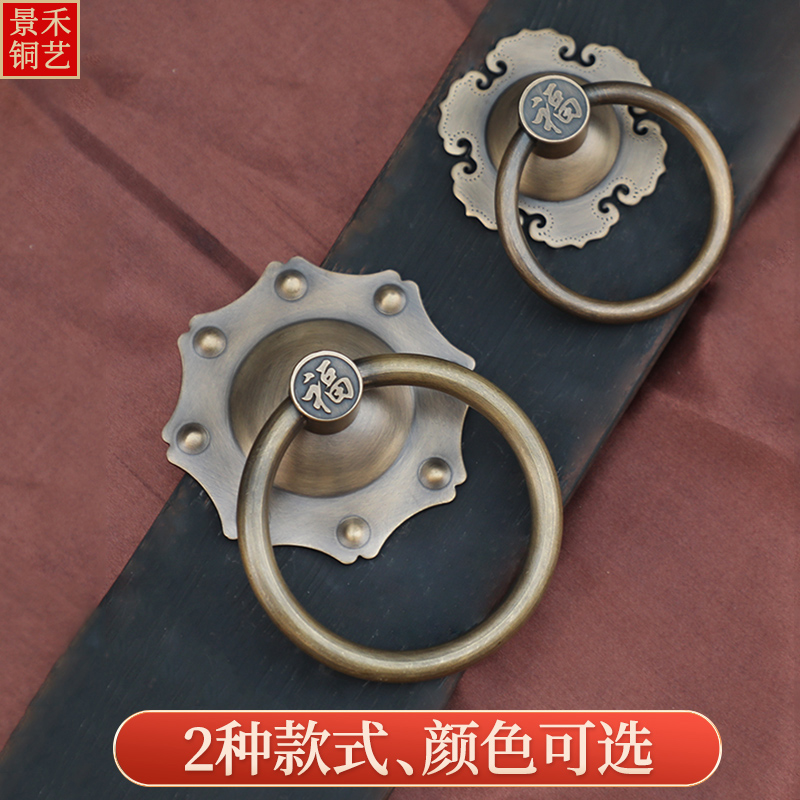 Pure copper door ring Chinese antique door pull hands ancient garden solid wooden door handle old retro cabinet door draw ring