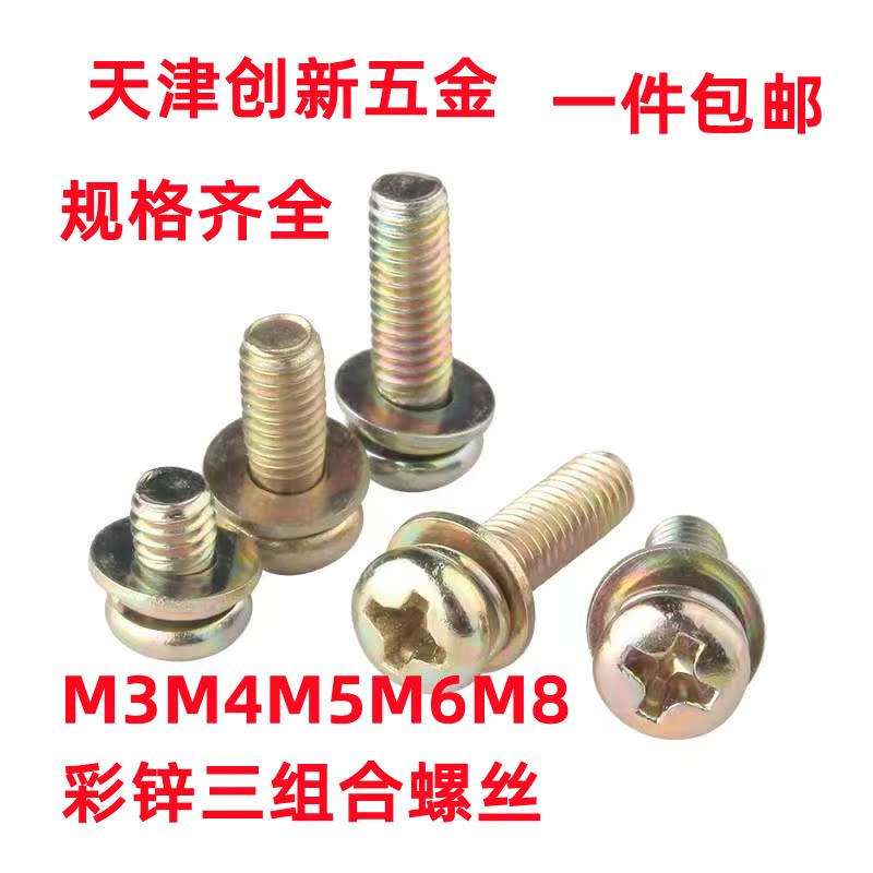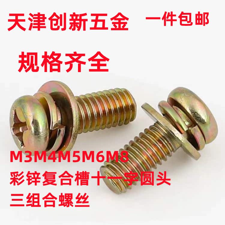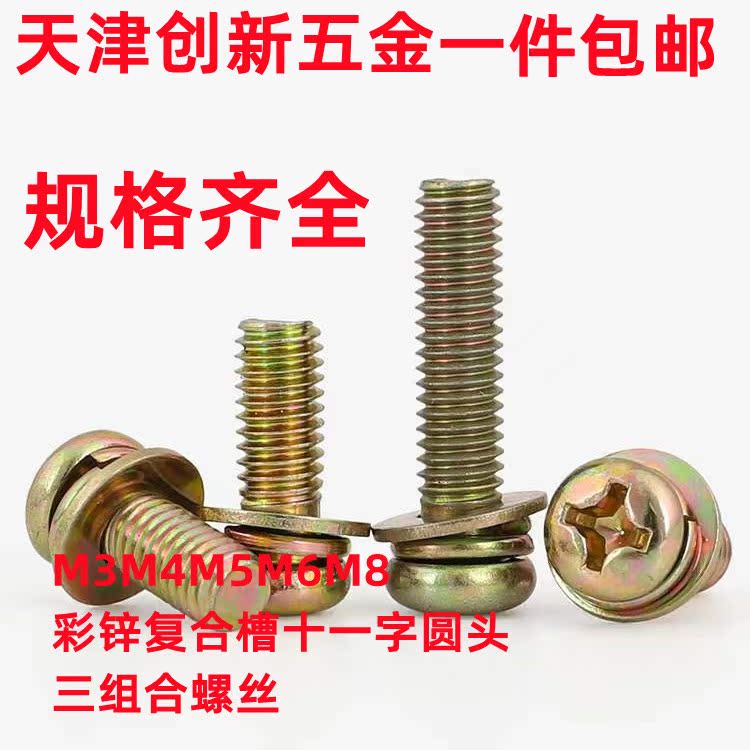 Color zinc composite groove eleven-character round head three-combination screw cross belt pad screw half-round machine nail M3M4M5M6M8