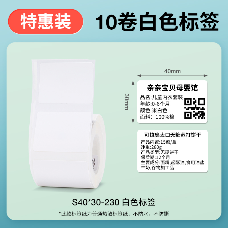 ---Suitable for B21 B3S B1 label paper--- 5 rolls of S40*20-320 white label paper 5 rolls of S40*30-230 white label paper