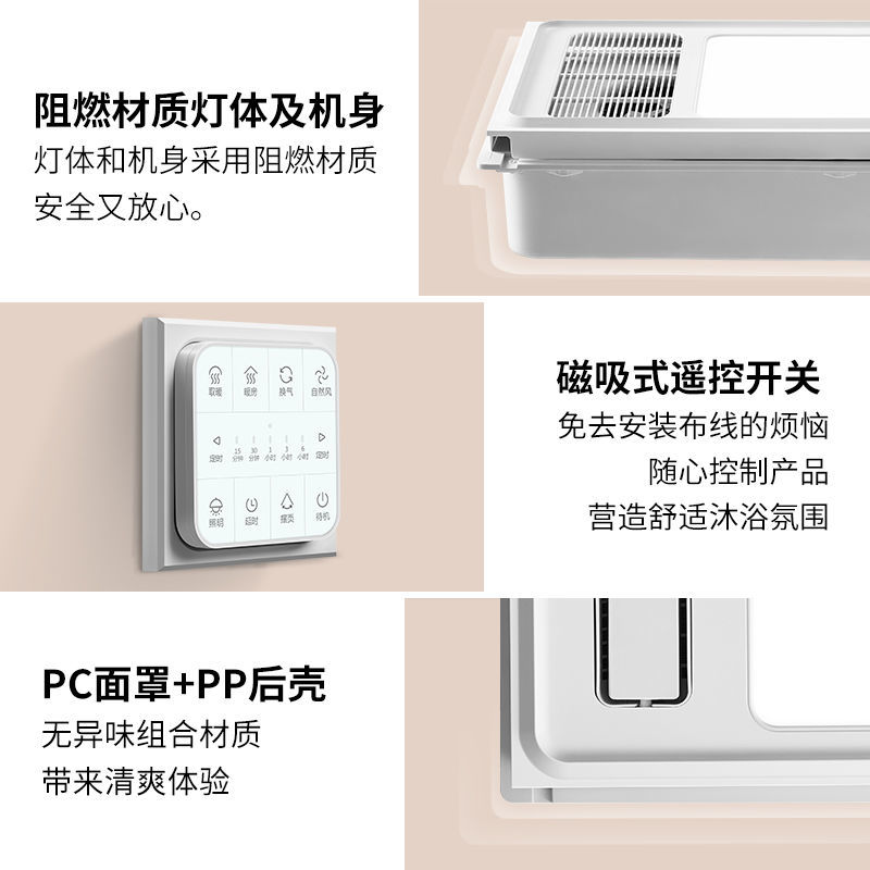 Bull Integrated Ceiling Bathroom Bath Bully Heating Exhaust Fan Ventilation LED Light Five-in-One Ultra-thin Smart - Taobao
