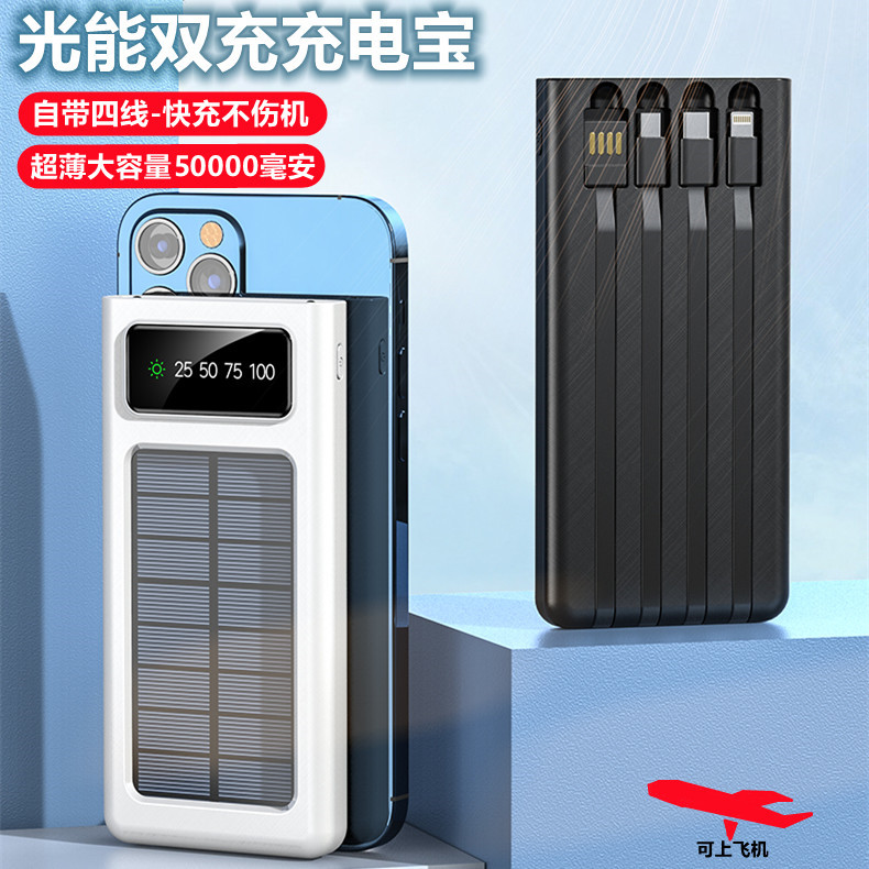 Official light energy solar mobile charger comes with line flash charge fast charge large capacity ultra-thin compact portable mini 50000 mAh suitable for oppo Apple Huawei Xiaomi mobile phone dedicated 20,000