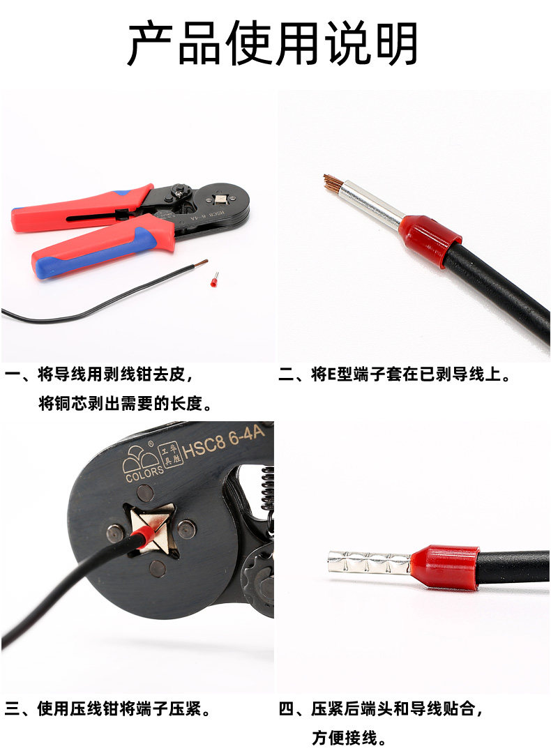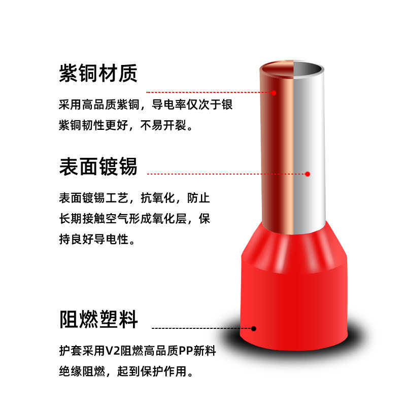 Tubular cold-pressed terminal block pin-type wire nose complete copper connector E0308VE050810081508