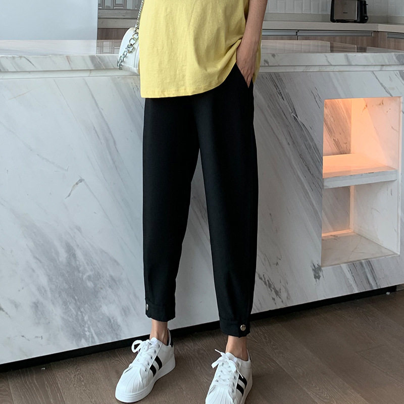 2022 Spring and Summer Pregnant Women Personality Nine-point Closure Trousers Maternity Pants Fashion Casual Harem Pants Look Thin Pure Cotton Belly Support