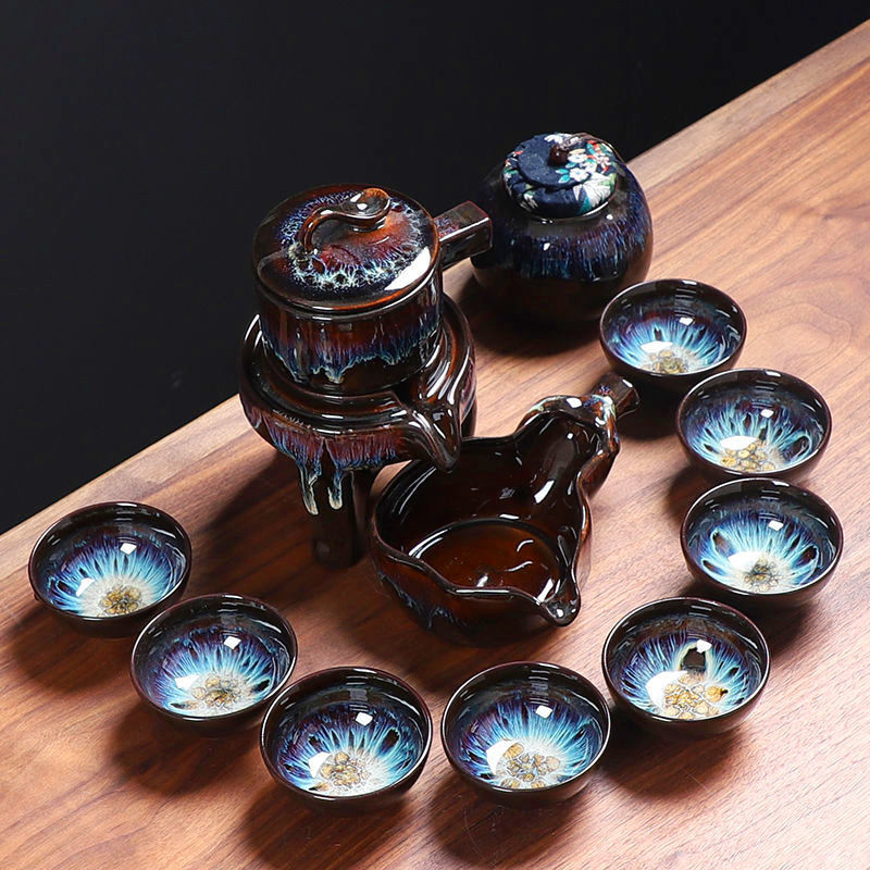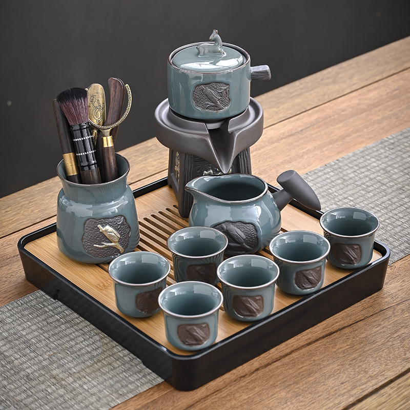 The whole set of lazy automatic ceramic tea cup cup cup cup cup cup cup cup cup Yixing purple glass