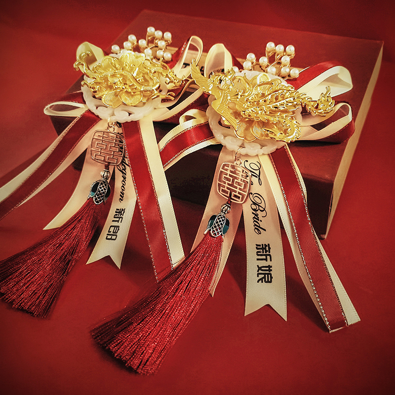 Wedding Chest Flower Supplies High-end Dragon Phoenix Groom Bridegroom Bridegroom Bridesmaid's Parents' Parent Wedding With Brooch Brooding Pearl-Taobao