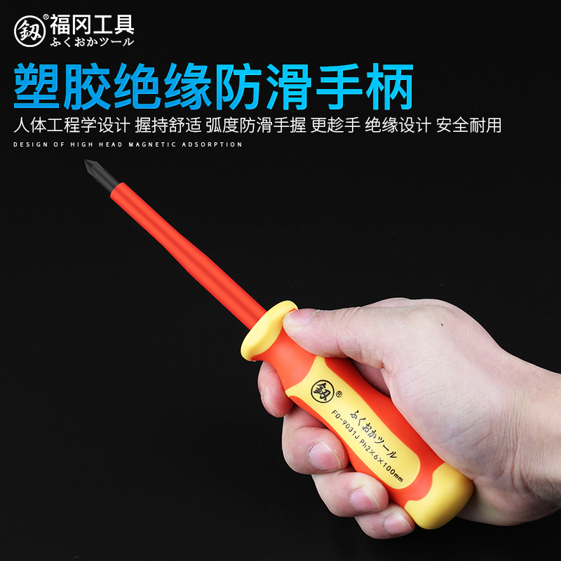 Japan Fukuoka insulated screwdriver electrician anti-electric professional change cone screwdriver with cross strong magnetic ultra hard screw batch-Taobao