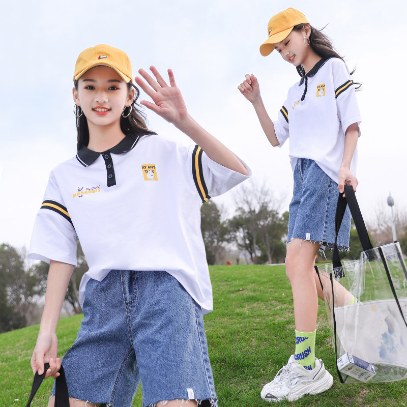 Next Inss Girls Short Sleeve Summer 2022 Summer Clothing for Large Child Pure Cotton T Shirts Children are loose two pieces