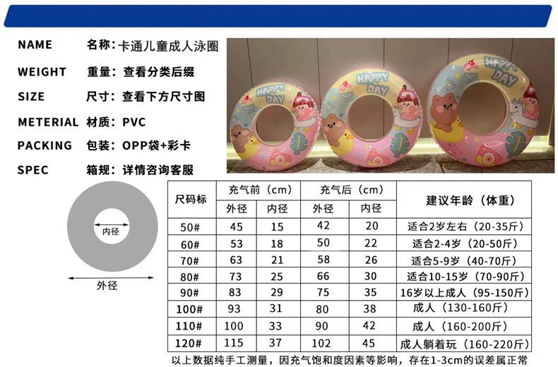 Child Adult Swim Ring Baby Armpits Adults Inflatable Thickened Cartoon Floating Circle Girls Cute Seaside Swimming Circle-Taobao