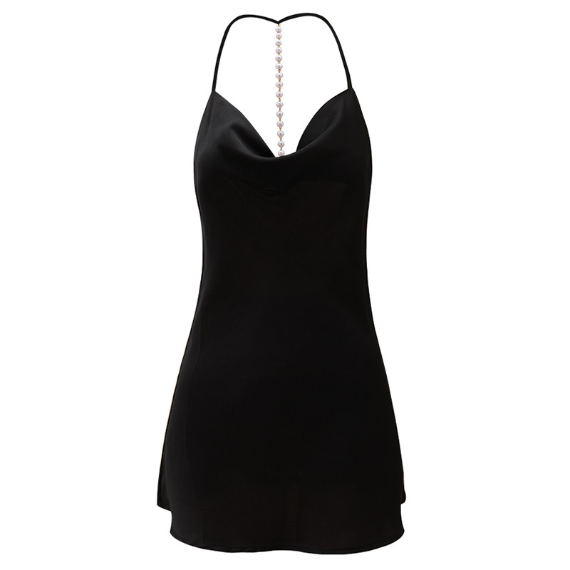 Sexy Sleepwear Summer Lady 2022 New Advanced Senses Ice Silk Thin Back Pearl Detachable Dew Back Harness Sleeping Dress