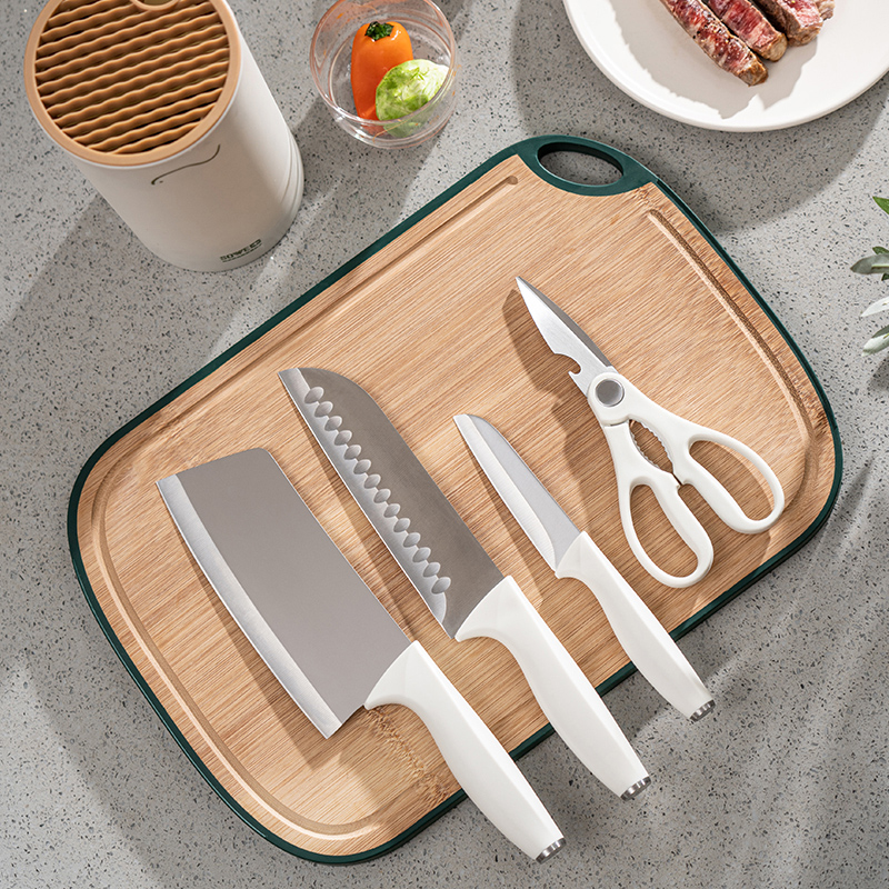 German antibacterial white stainless steel knife set kitchen kitchen knife household cutting board chopping board two-in-one combination