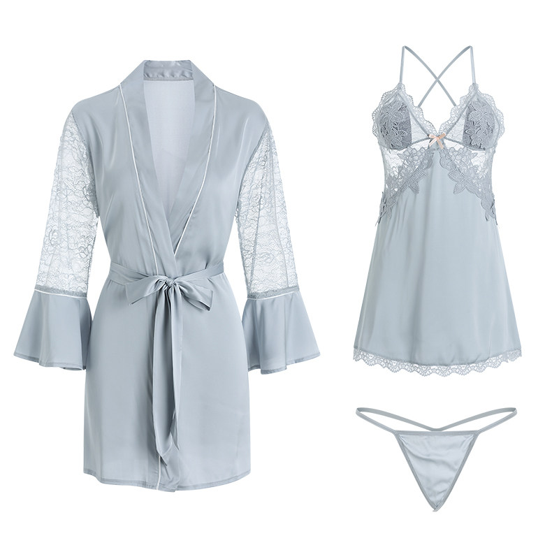 Sexy pajamas women's summer 2022 new high-end lace suspenders nightdress transparent thin section large size ice silk pure desire