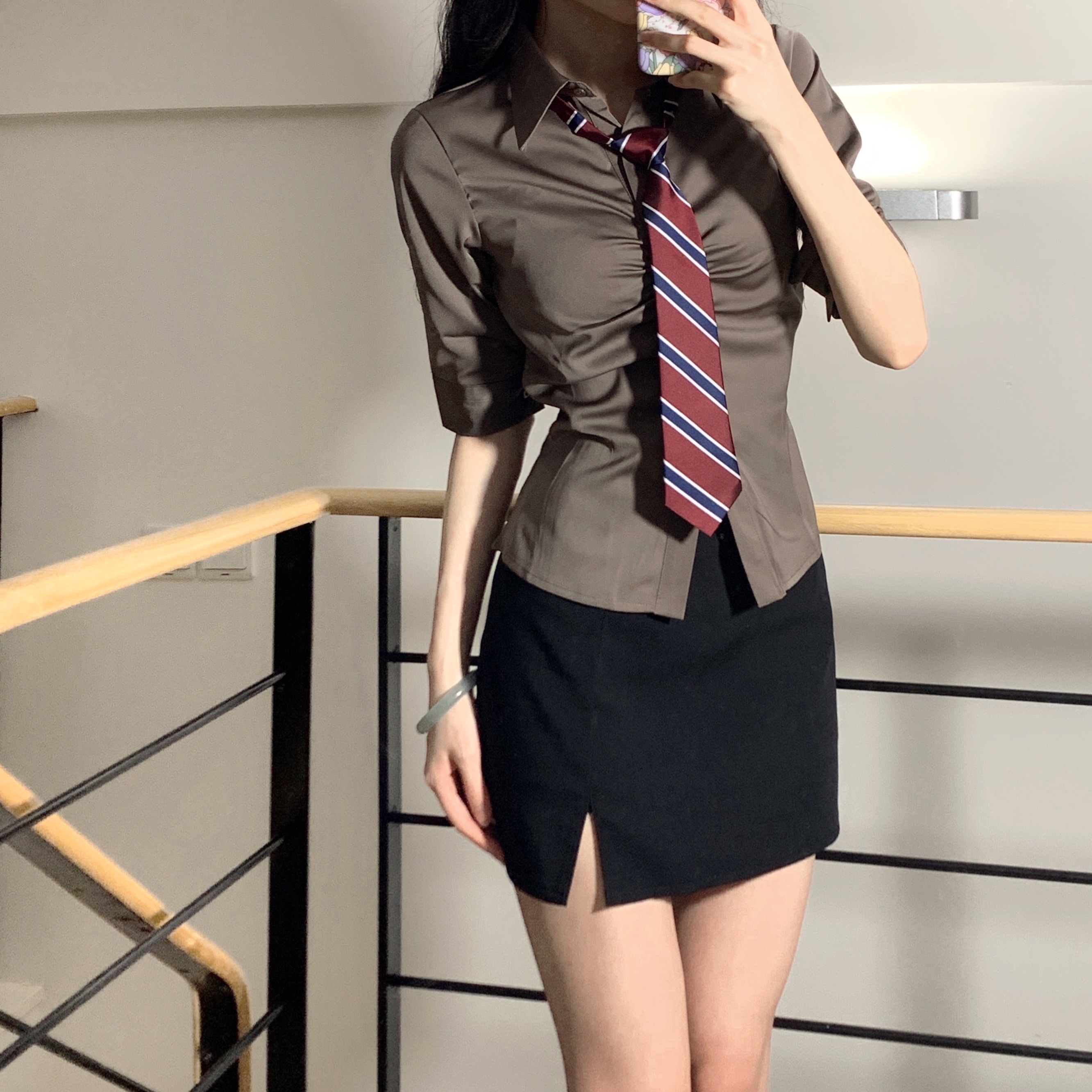 Gray miss shirt coffee lady shirt gray school shirt bag skirt coffee school girl shirt packed hip skirt black lady bag buttock skirt blue lady tie Deep red school tie