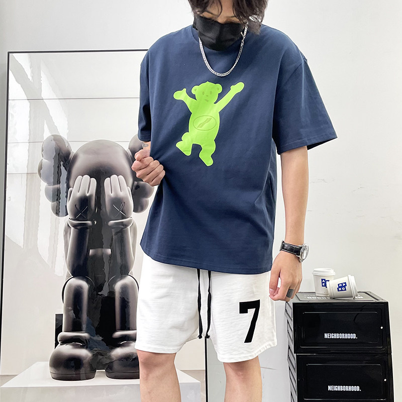 The popular fried chicken WE11DONE teddy bear double-sided print loose trend silhouette couple's short-sleeved T-shirt