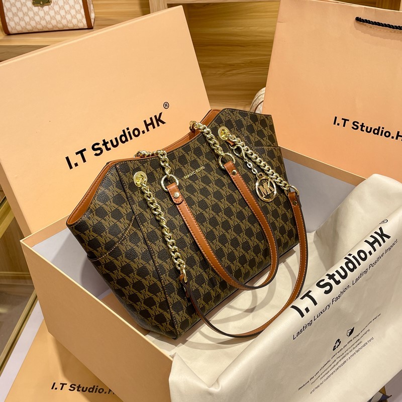 MK genuine leather tote bag female 2022 new all-match chain underarm bag high-end shoulder bag pet bag