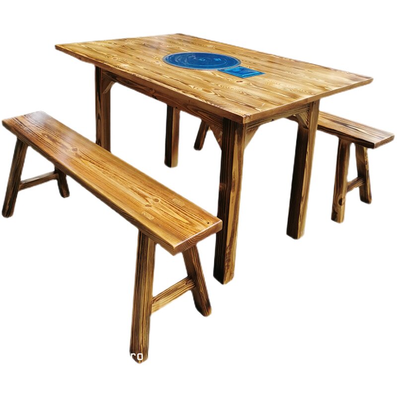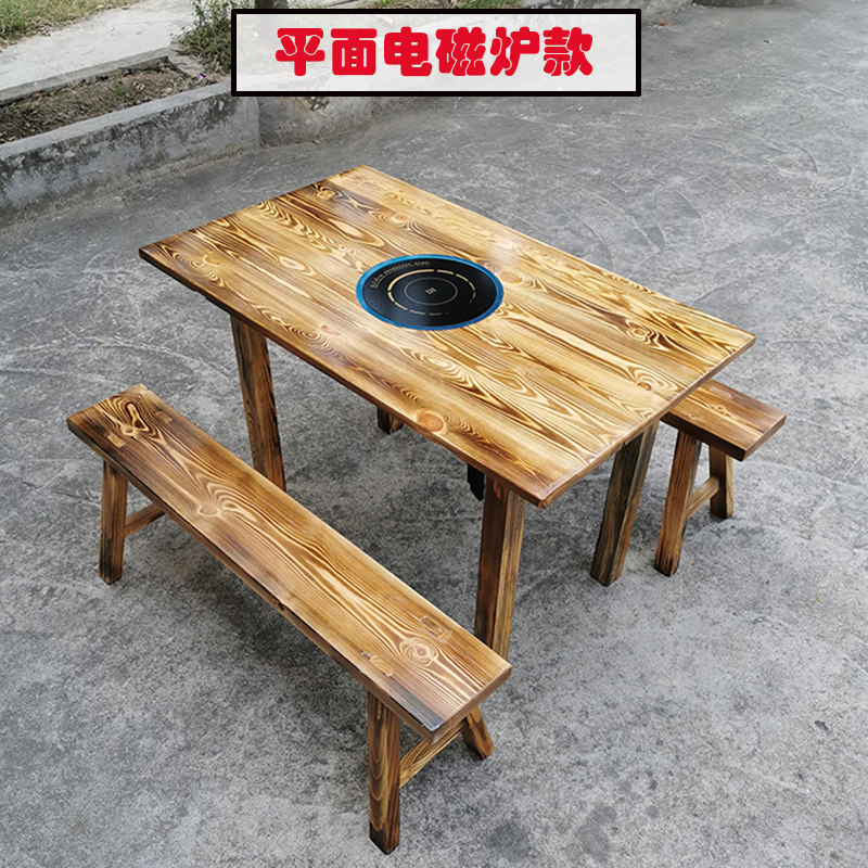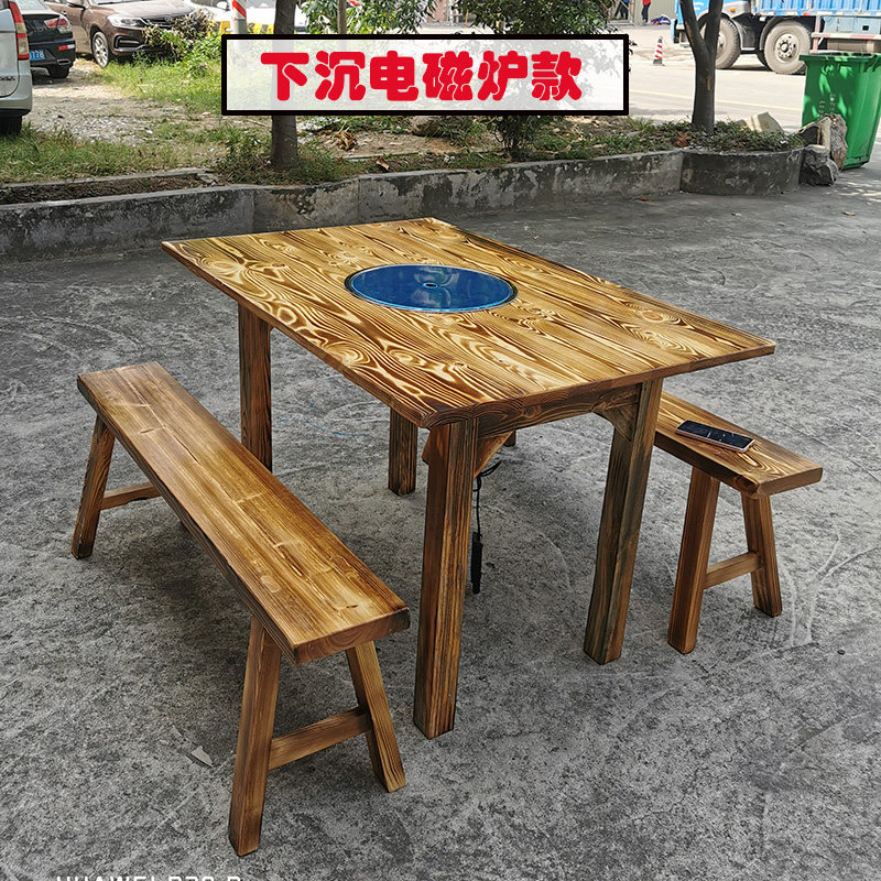 Solid wood electromagnetic furnace hot boiler table rectangular table hot pot shop hot pot shop long bench matching