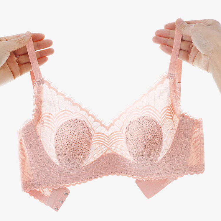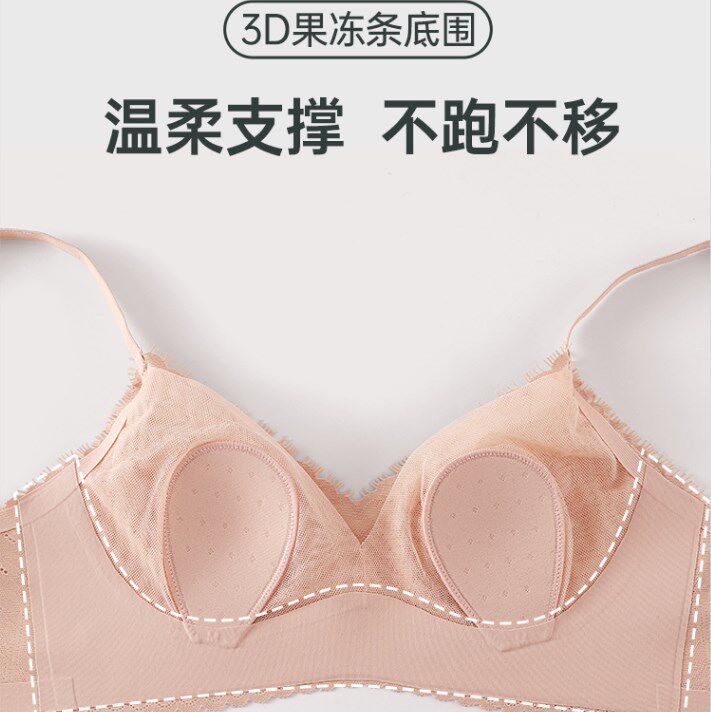 Schuoxygen Summer Pole Extremely Thin Underwear Woman Breathable Lace No Steel Ring Anti-Walk Light Rabbit Ears Cup no Mark Jelly Bra
