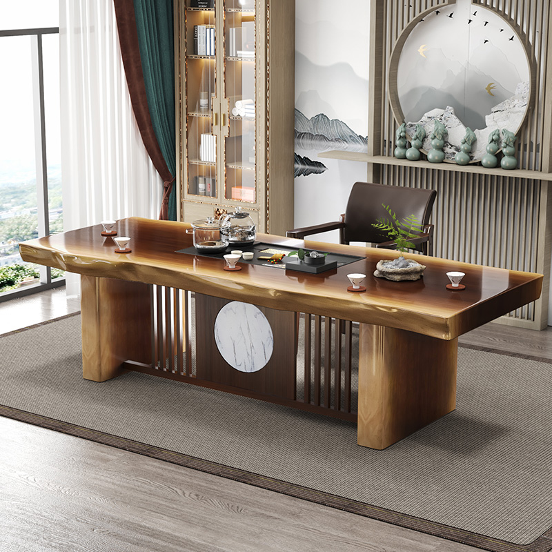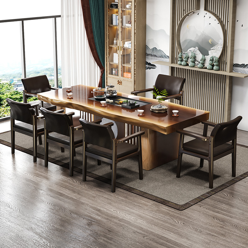 New Chinese-style Zen full-page log tea table and chair combination high-end office special-shaped tea table flowing water tea tray to make tea