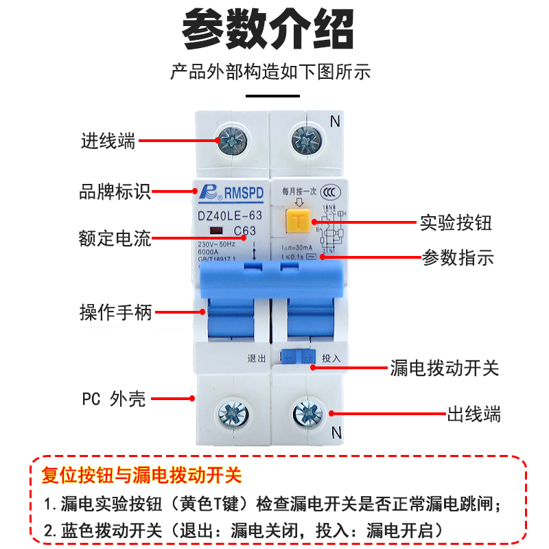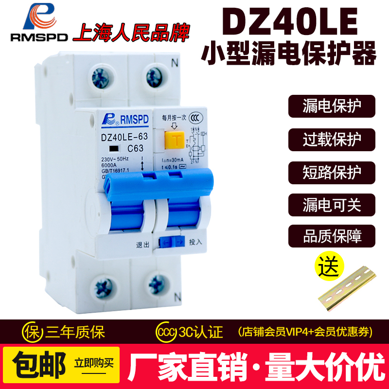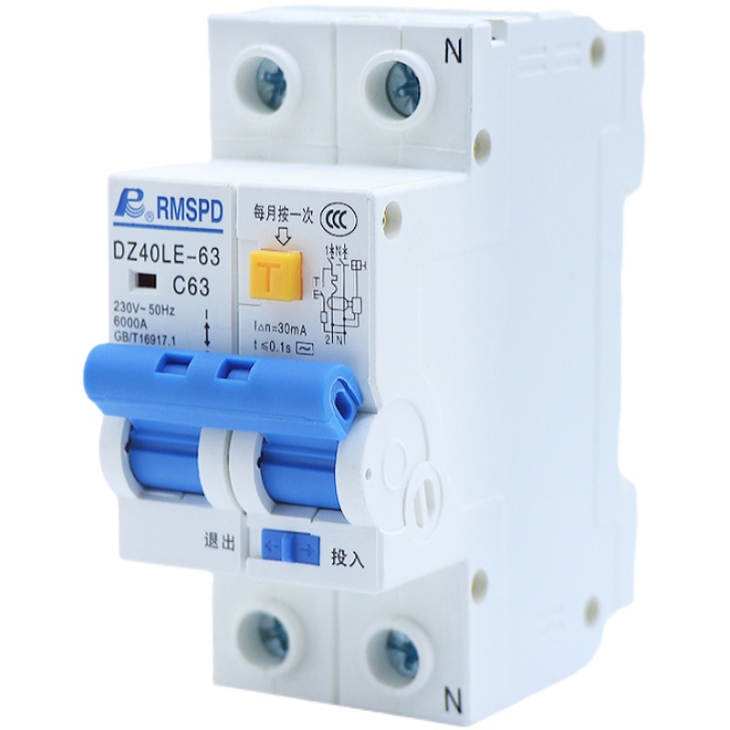 Shanghai People's air switch with earth leakage protector 32A Total open 2P63A single-phase electric leakage protection home breaker