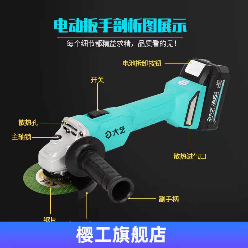 Dayi brushless lithium electric angle grinder rechargeable grinder multi-purpose household cutting machine small polishing machine grinding machine