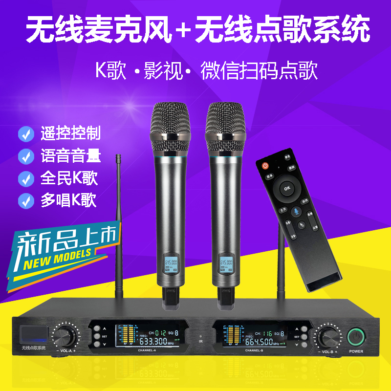New network karaoke machine U-segment FM one drag two home K song wireless microphone karaoke family microphone