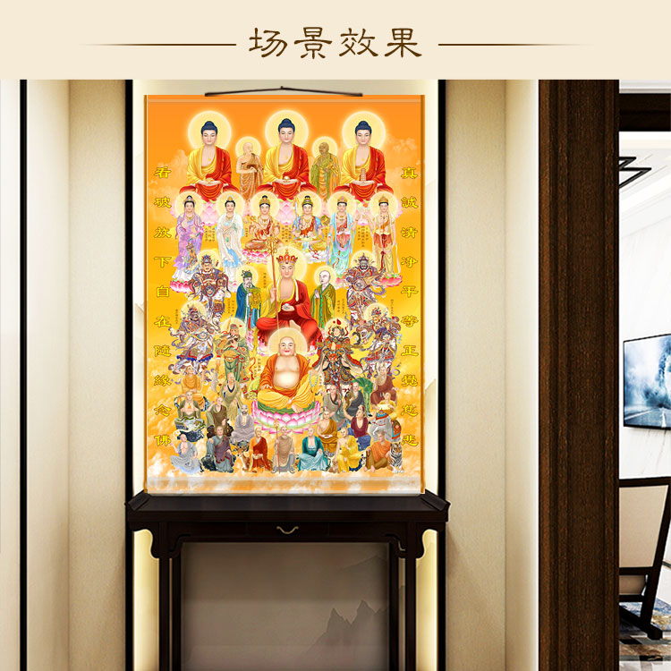 High-definition solemn portrait of the eighteen arhats of the whole hall Buddha Guanyin Manjushri Bodhisattva scroll hanging painting