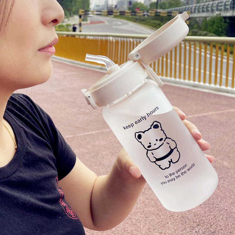 Simple anti-drop plastic straw water cup female ins student cup Korean version high-value cute portable tea cup 500ml