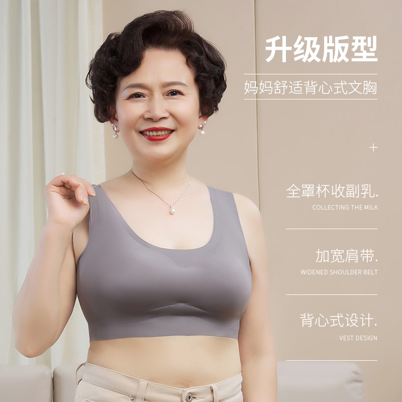 Middle Aged Underwear Female Moms Bra Hood Middle Aged Woman No Steel Ring Vest Type Big Code No Mark summer-Taobao