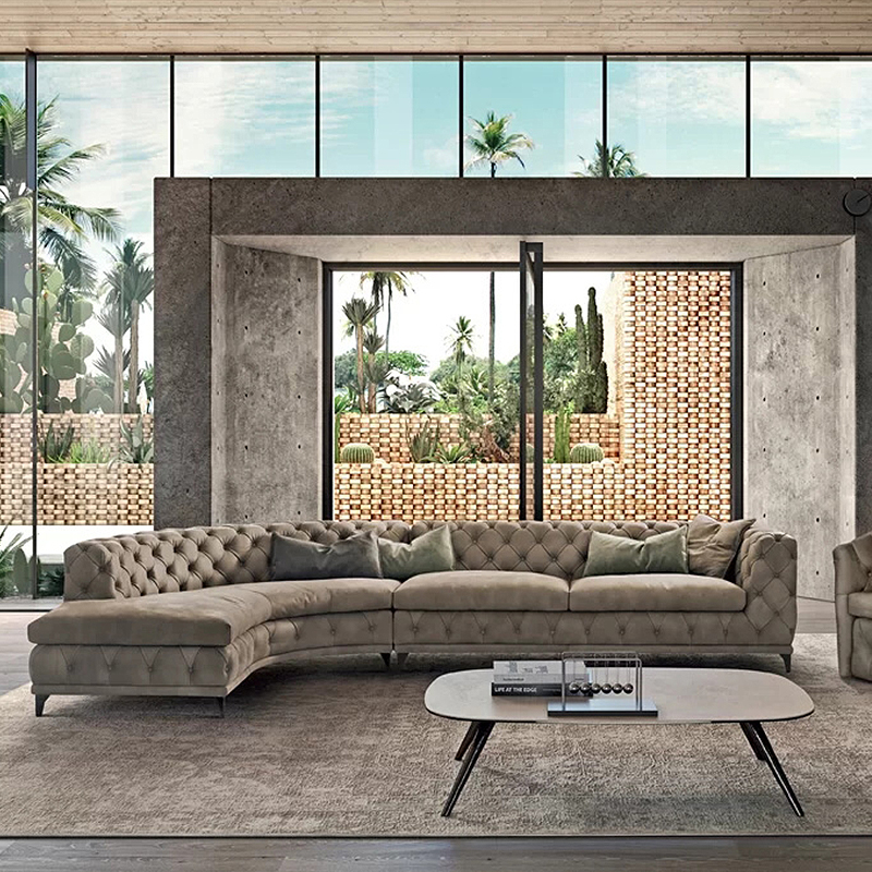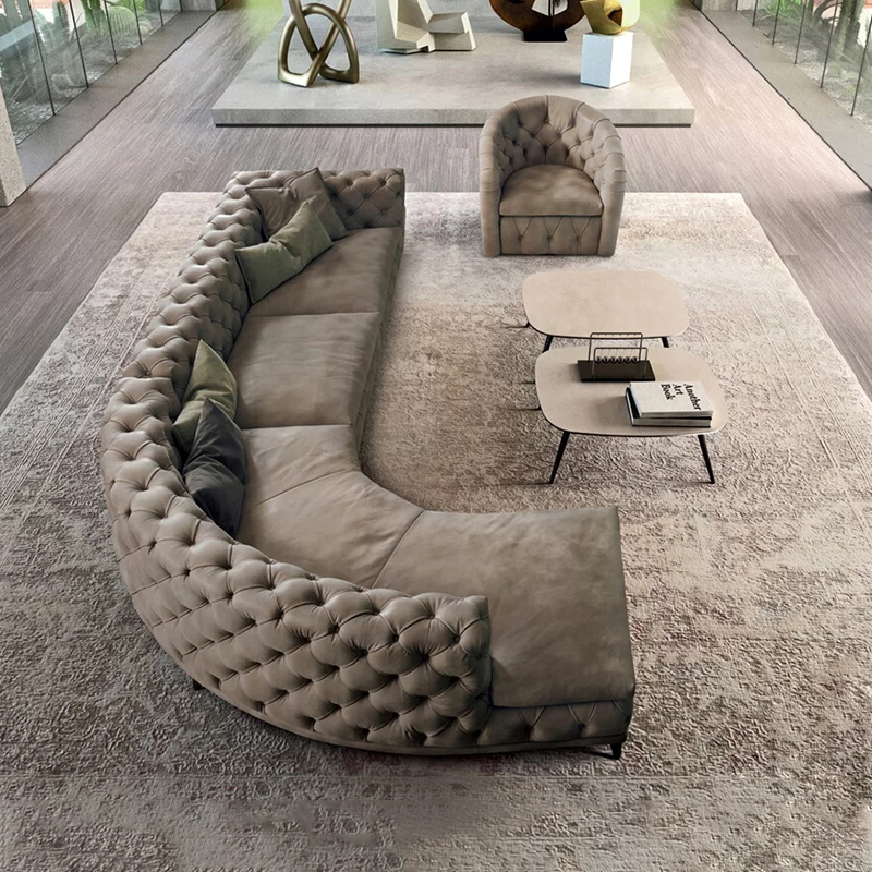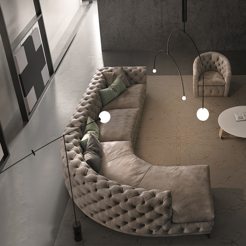 Italian light luxury pull buckle leather sofa designer villa Daping number three-person concubine curved corner sofa
