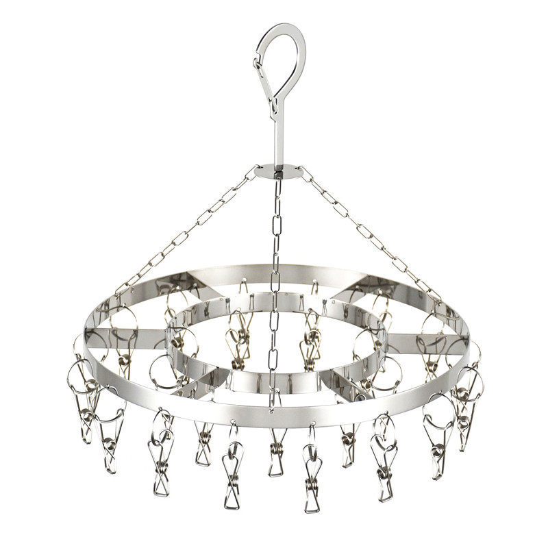 Stainless steel hanger multi-clip drying socks drying underwear household round hook windproof baby clothes tray multi-function
