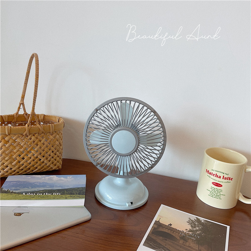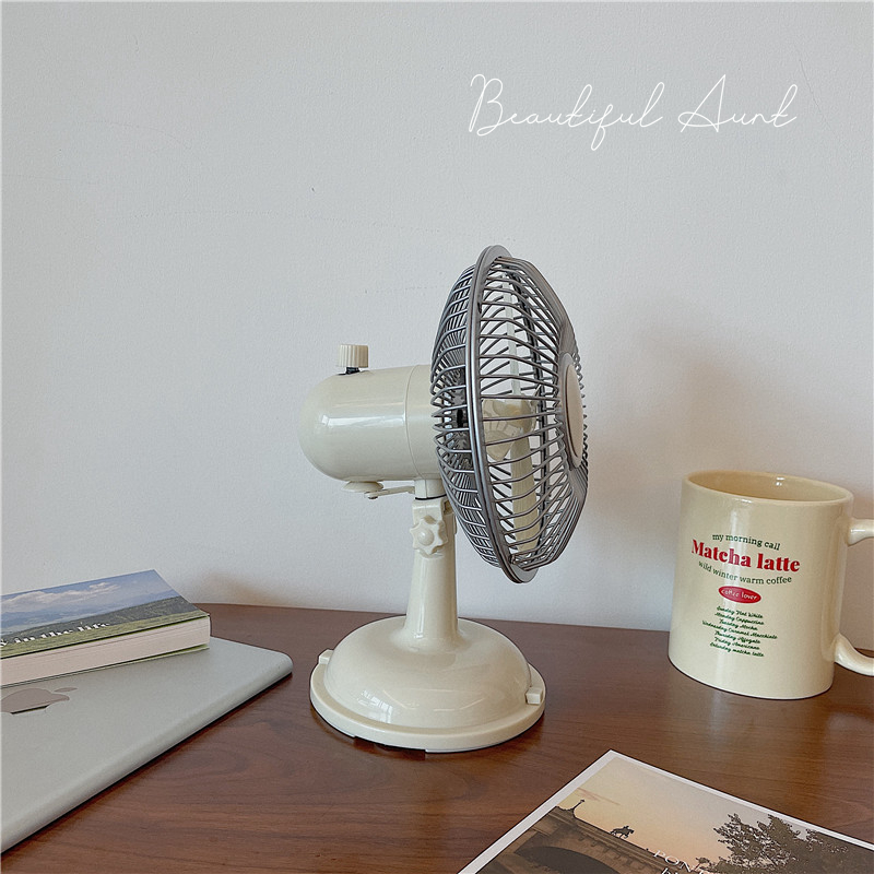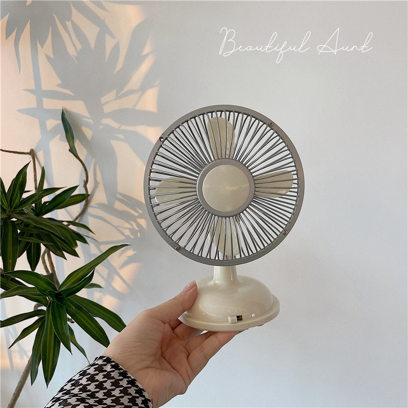 *Pretty little aunt*ins wind retro fan beige yellow usb shakes head desktop mini-electric fan