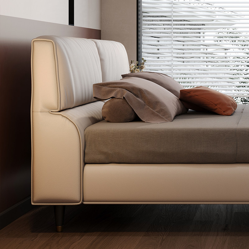 Modern minimalist bed high-end Italian minimalist leather bed high box storage high-legged edge bed master bedroom double bed leather bed