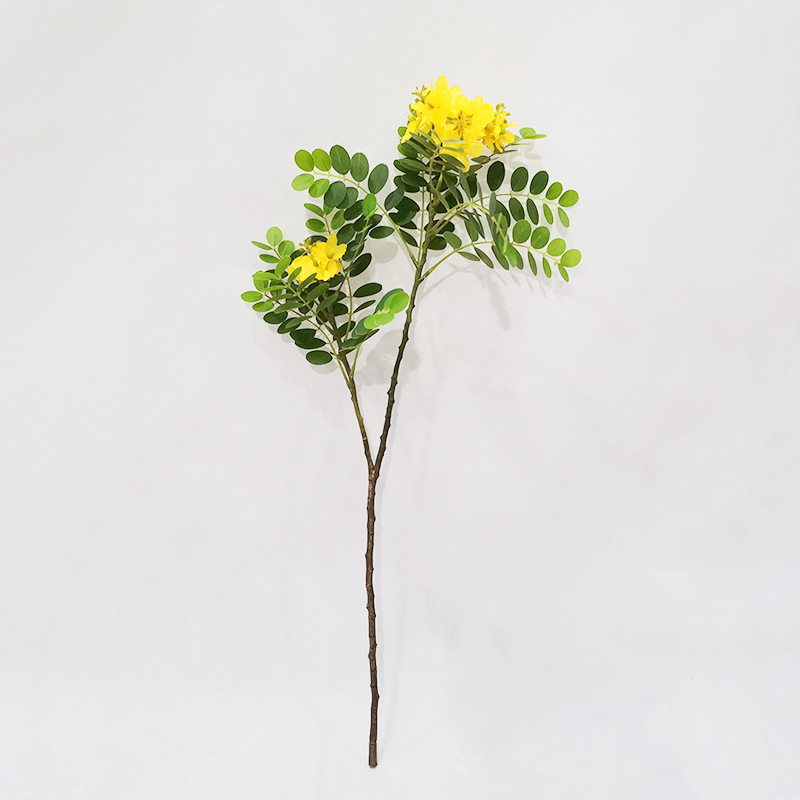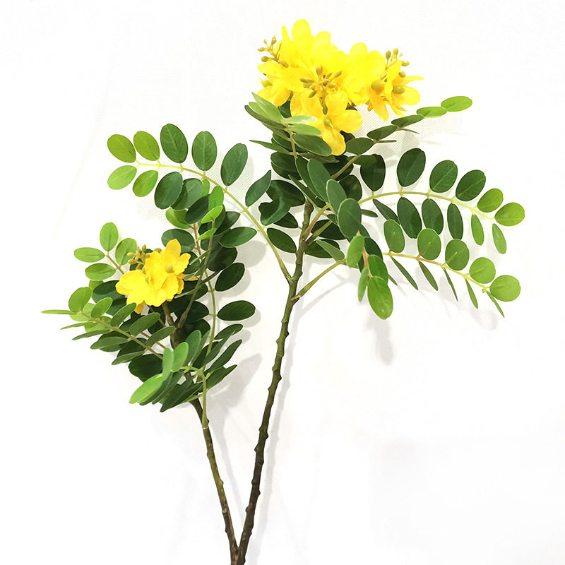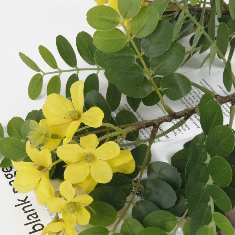 Yellow locust flower simulation flower desk decoration home living room coffee table put fake flower decoration flower silk flower green leaf
