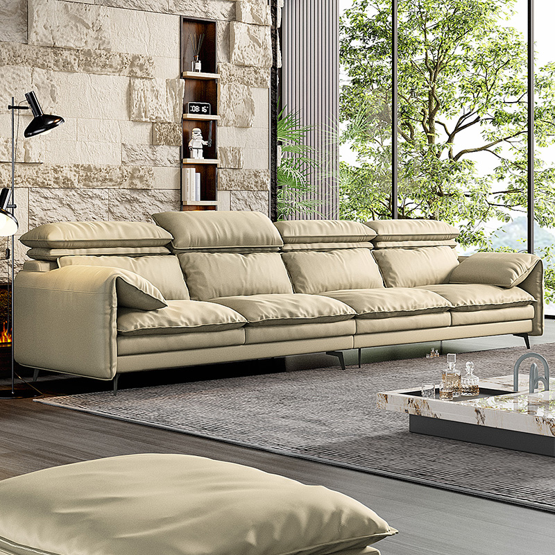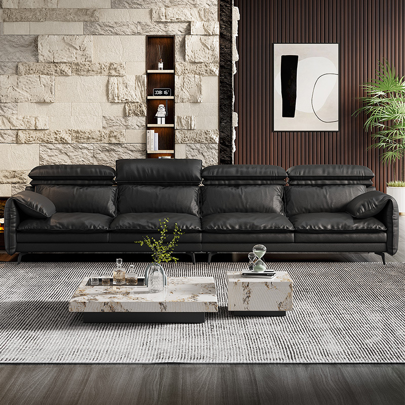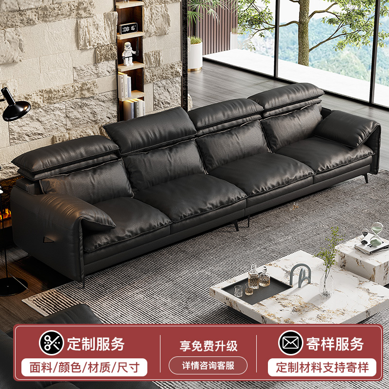 Luxury Family Leather Cover Head Coal-leather Nordic Small House Modern Simple Living Room Triple-Person Down