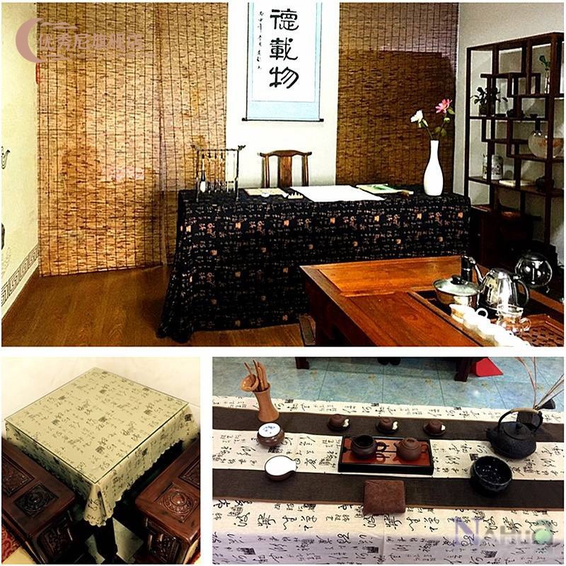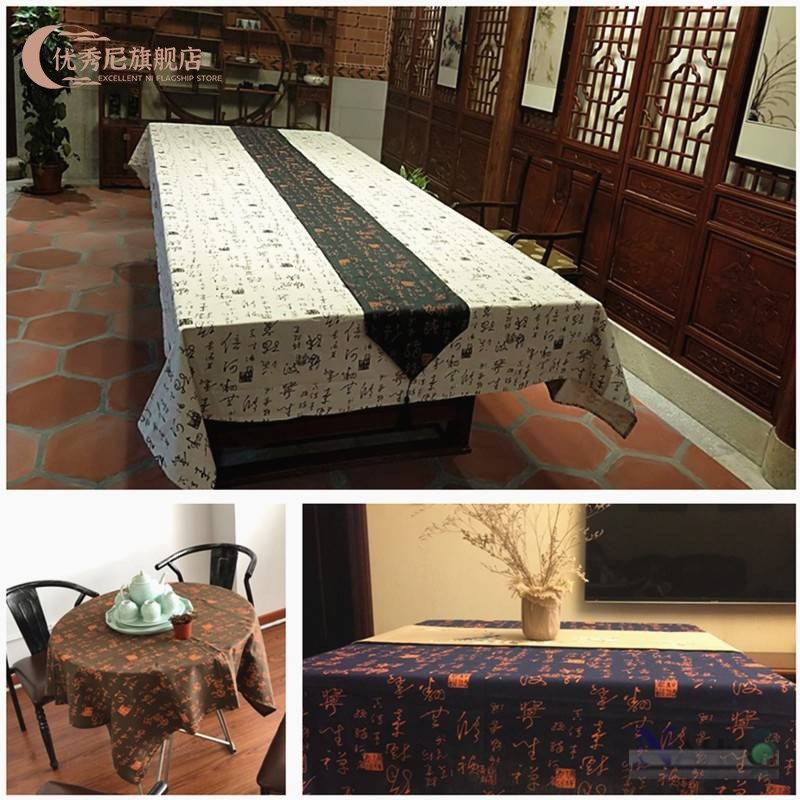 Cotton linen Chinese style calligraphy table cloth Chinese style Zen tea table cover cloth retro rectangular table cloth imitation ancient table cloth-Taobao