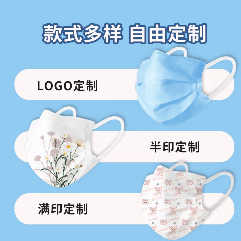 Mask Custom Logo Print Pattern Disposable Triple 3d Stereo Single Independent Packaging Ad Diy Free Design