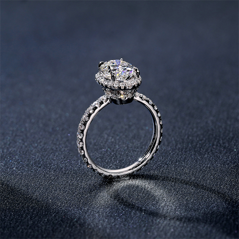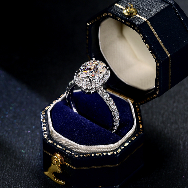 18K Platinum Mosanstone Ring Big Carra Egg-shaped Pigeon Egg D Color PT950 Platinum Engaged Wedding Diamond Ring Girl-Taobao