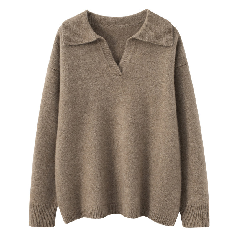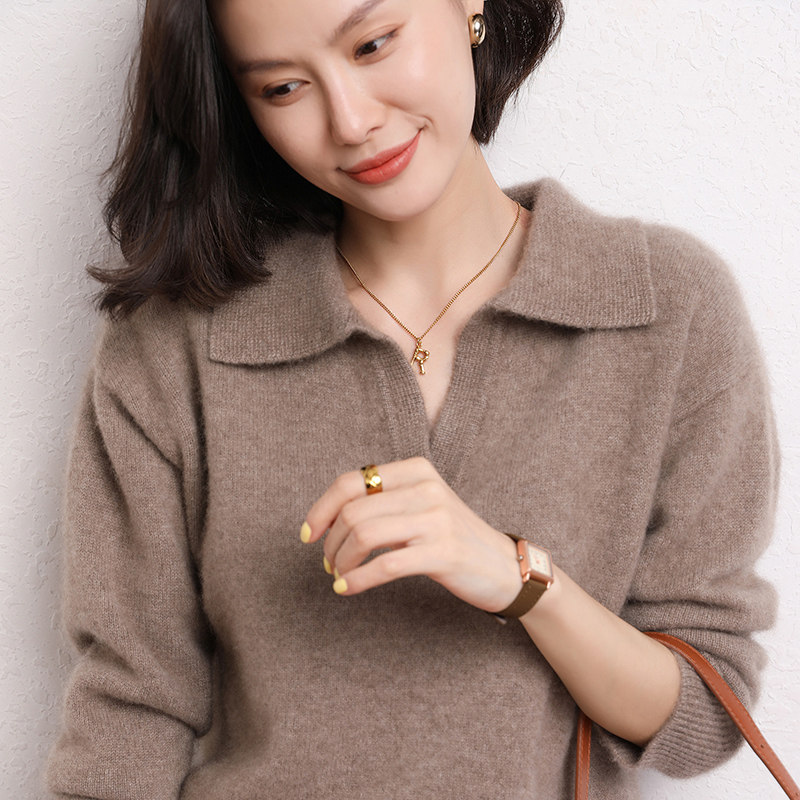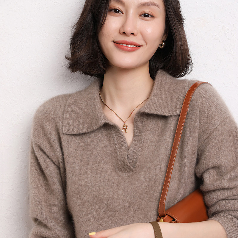 100% cashmere sweater women's pullover polo collar sweater autumn and winter new pure cashmere slim short knitted bottoming shirt