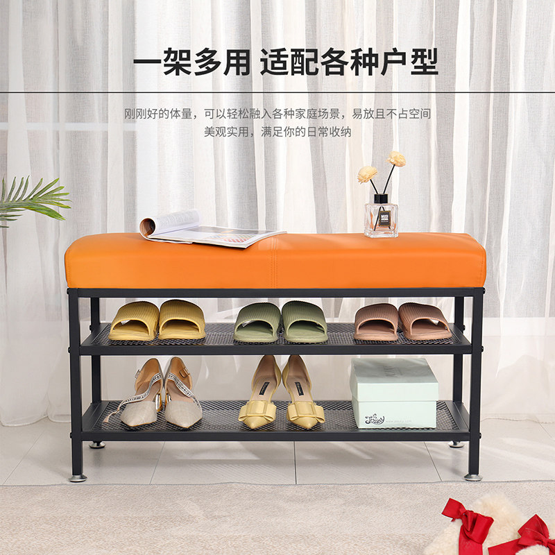 Changing shoes stool H-style black length 60 (orange leather cushion) changing shoes stool H section black long 80 (orange leather cushion) changing shoes stool H section black long 100 (orange leather cushion) for changing shoes
