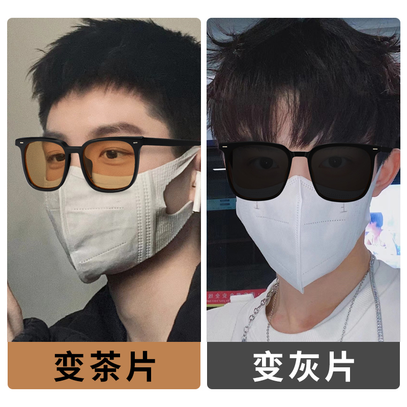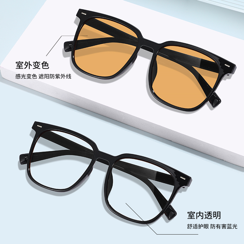 Photosensitive color-changing glasses men's tide large frame anti-blue light anti-radiation black frame eye frame myopia can be matched with degree flat light