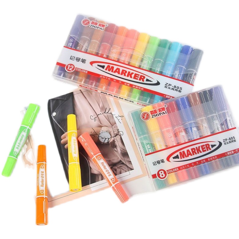 Double headphone number pen thickness two-end colored oily pen waterproof speed dry not dropping color logistics exclusive exotic pen durable