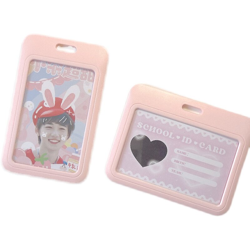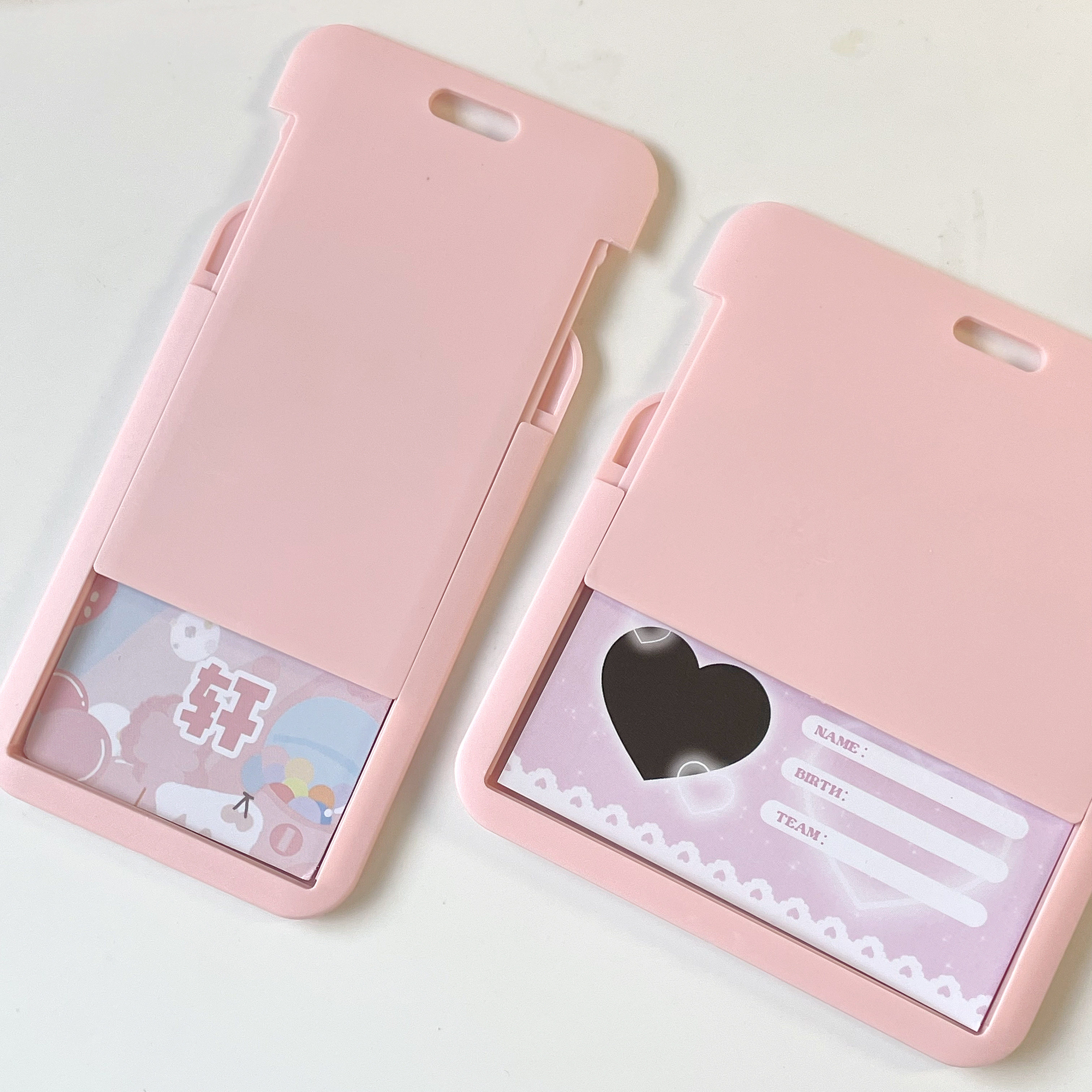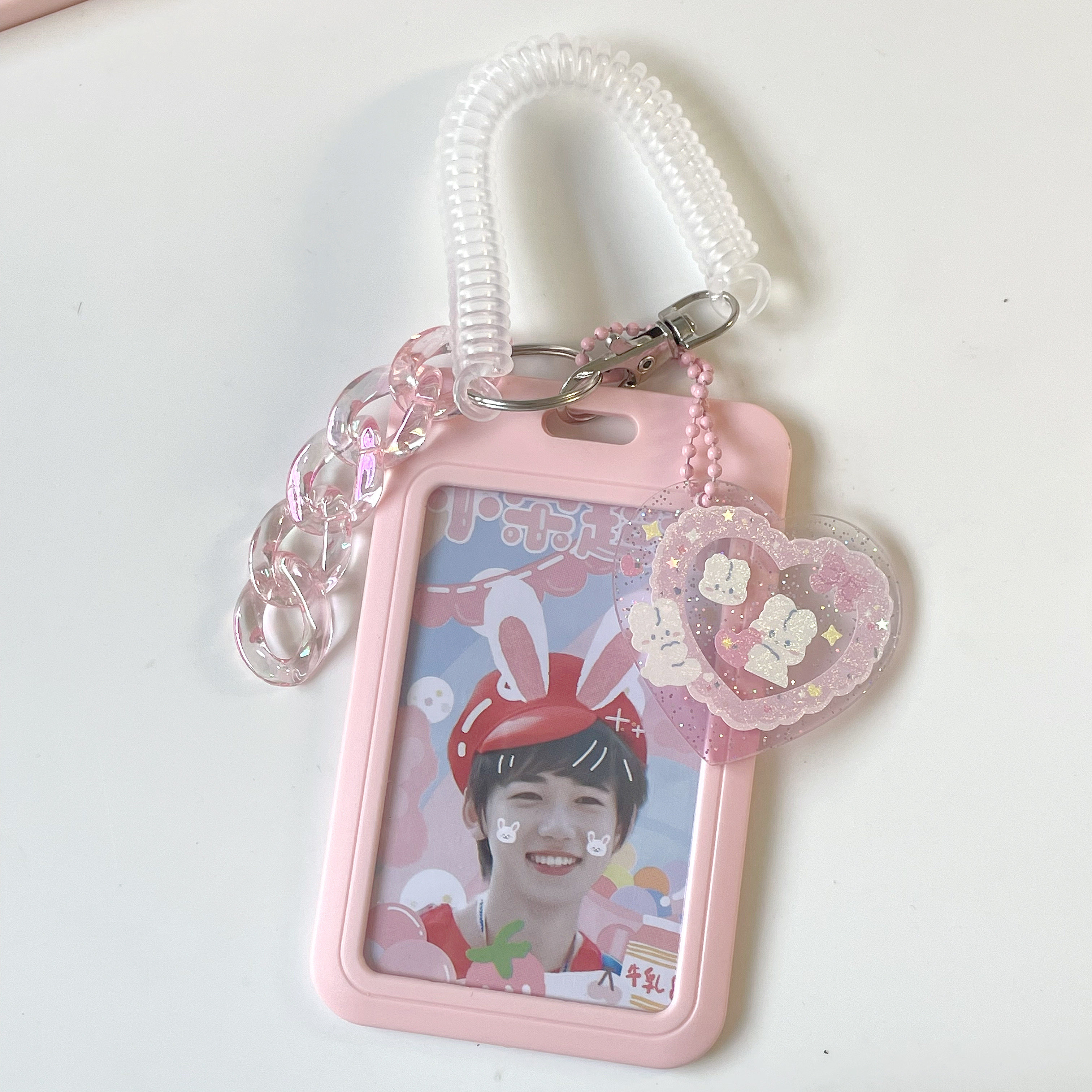 Happy Stupid Peach Powder Small Card Document Campus Card Bus Card Access Card Card Sleeve Slide Keychain - Taobao