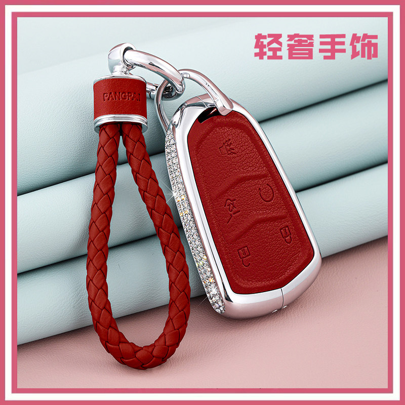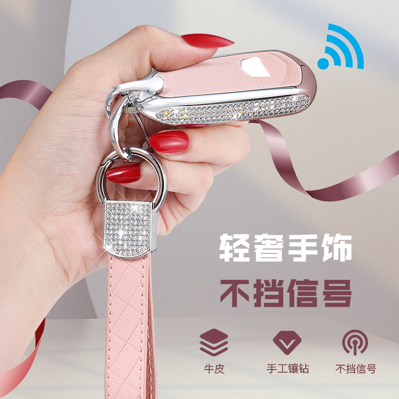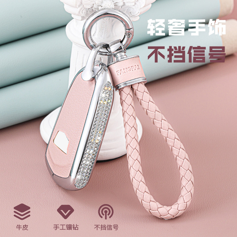 Model B Morandi white leather key case with diamonds Double-use keychain with diamonds Model B Morandi white leather key case with diamonds Italian style braided rope Model B Morandi pink leather key with diamonds